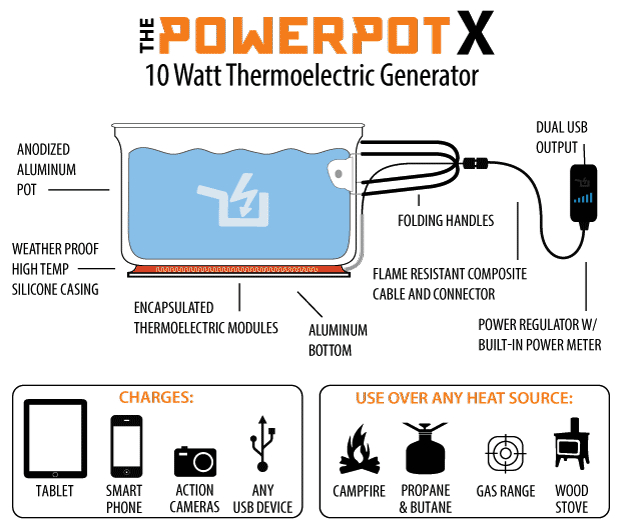 campeggio, caricatore, portatile, powerpot X, termoelettrico, trekking