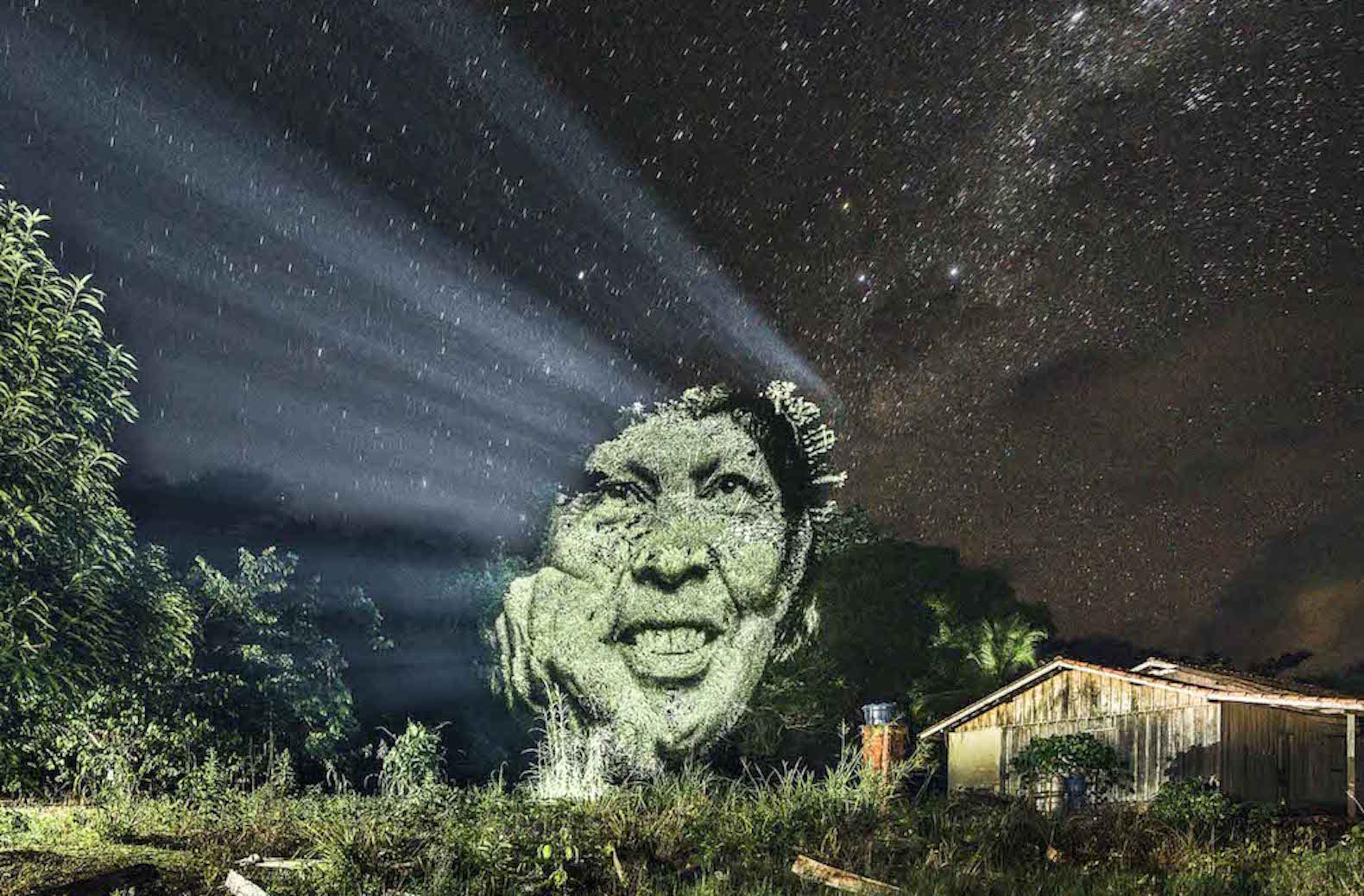 Negli ultimi 40 anni, quasi il 20% della foresta amazzonica è stato distrutto, e gli scienziati temono che un ulteriore 20% potrebbe essere perduto nel corso dei prossimi 20 anni. Nel tentativo di aumentare la consapevolezza della deforestazione, il fotografo francese Philippe Echaroux ha catturato ritratti in movimento di indigeni brasiliani e ha proiettato le immagini sugli alberi amazzonici.