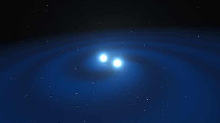 Una stella di neutroni è il nucleo fuoriuscito di una stella massiccia che è scoppiata e morta. Di solito ha un diametro di una ventina di chilometri e una massa leggermente più densa di quella del sole. Quando due stelle di neutroni si uniscono, fanno delle spirali una intorno all’altra, sempre più vicine: la filatura della spirale si intensifica fino a quando si verifica un impatto forzato e un’onda gravitazionale gigantesca viene emessa nell’universo alla velocità della luce.
