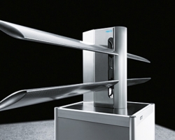 La nuova turbina eolica, denominata ‘DualWingGenerator’ e ideata dal gruppo internazionale Festo, è costituita, in particolare, da una piccola colonna verticale che supporta una coppia inferiore e una superiore di lame, della misura di 250 centimetri.